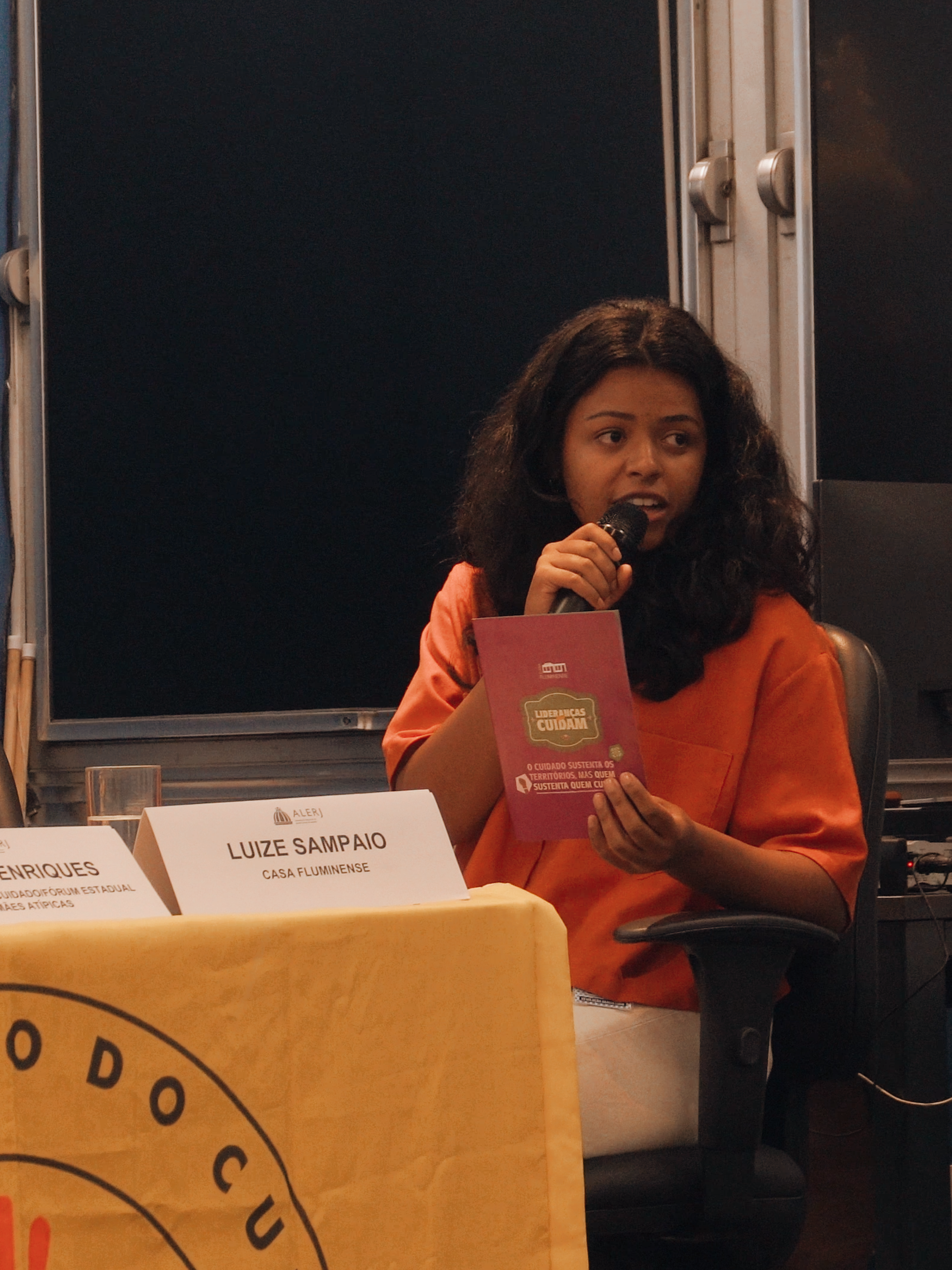 Luize Sampaio, coordenadora de informação da Casa Fluminense, destacou durante a Audiência como pautar o cuidado a partir das lideranças que cuidam é fundamental para pensar políticas públicas na metrópole.