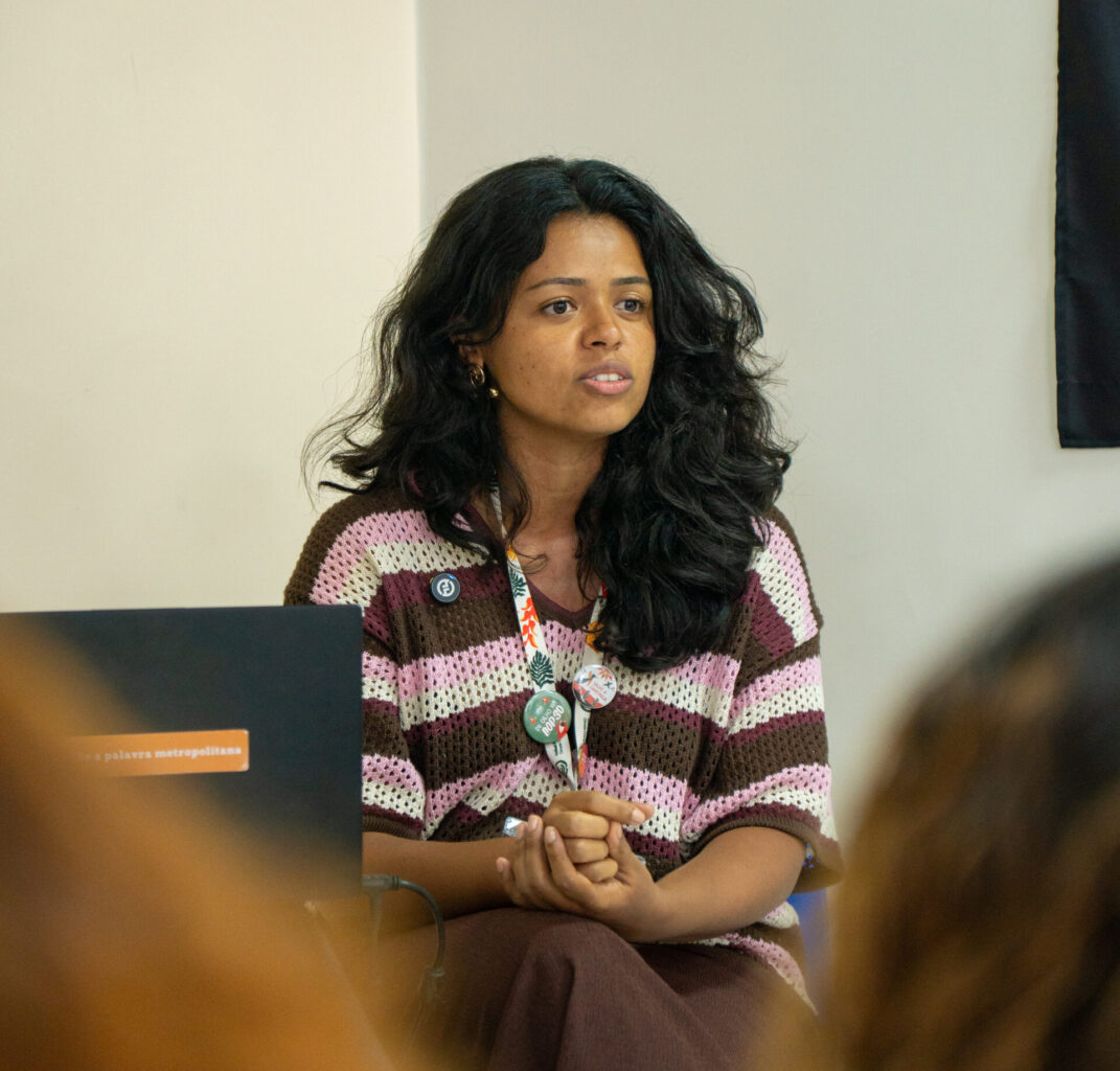 Entre as agendas em Belém, o “Encontro GCD Pré-COP: construindo caminhos entre dados, territórios e justiça climática” reuniu organizações, lideranças e pesquisadores do país inteiro para apresentar metodologias de monitoramento e debater como a produção cidadã de dados pode responder às urgências climáticas. “A gente decidiu realizar esse evento para reunir pesquisadores que estão gerando dados dentro de periferias e favelas de todos os territórios do país, com o objetivo de apresentar a GCD e ampliar o mapeamento que estamos fazendo de organizações que atuam dessa forma”, compartilha a coordenadora de informação da Casa Fluminense.