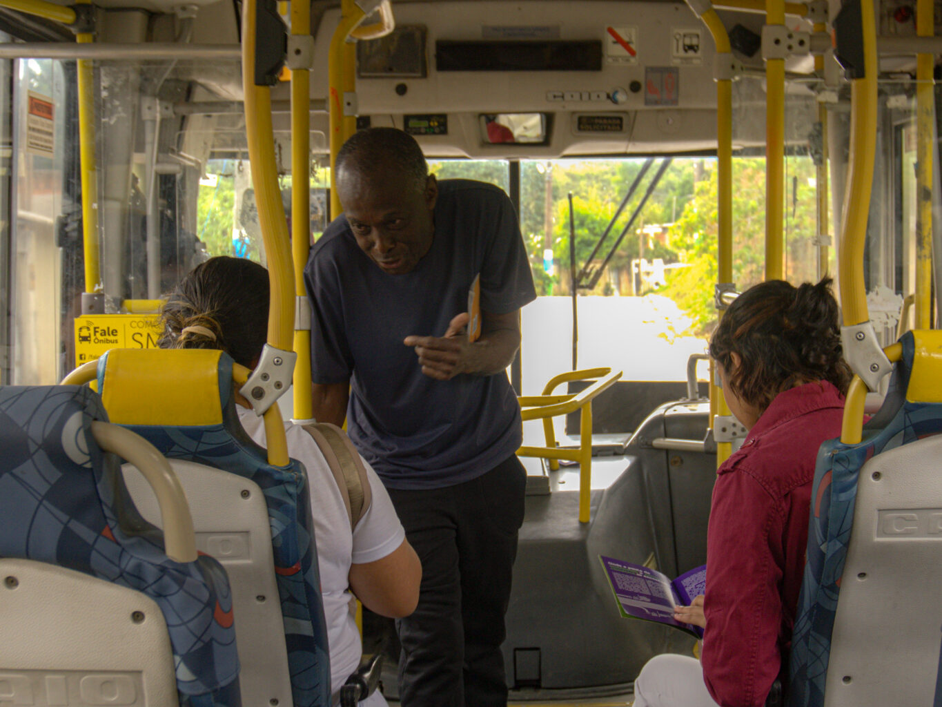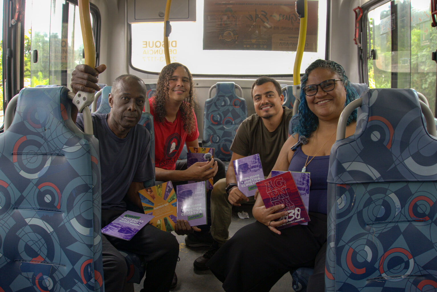 Ônibus antigos, motoristas sem uniformes ou crachá de identificação, sem ponto de ônibus, sem estradas pavimentadas. Esses foram alguns dos pontos levantados pelo Mobiliza Japeri quando conversou com a Casa Fluminense sobre a implementação da política. “Estamos celebrando, podendo estar juntos aqui e falando dentro do ônibus, vivendo a política pública, na prática, mas também verificando e avaliando a implementação”, afirma Vitor Mihessen, coordenador geral da Casa Fluminense.