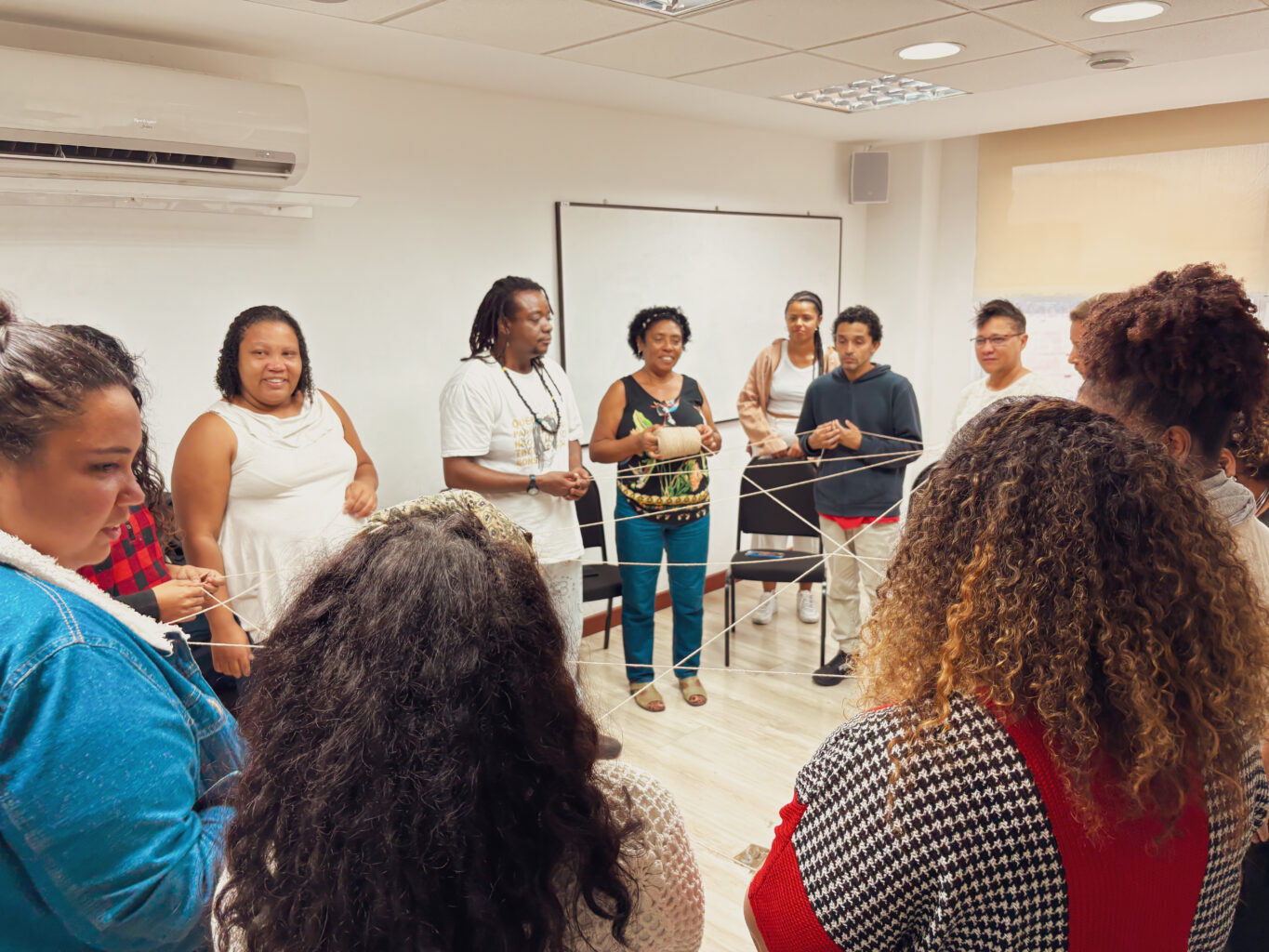 A formação reuniu 21 lideranças, todas moradoras de favelas e periferias da Baixada Fluminense, Leste da Metrópole, Zona Oeste e Centro da cidade do Rio de Janeiro. Transitando por territórios como Duque de Caxias, São Gonçalo e Vila Kennedy, os encontros foram itinerantes e levantaram temas como a apresentação da agenda do cuidado, a partir de uma perspectiva de racial, em uma aula conduzida por Thamires Ribeiro, especialista em cuidado, e Luiza Xavier, do Instituto Procomum.